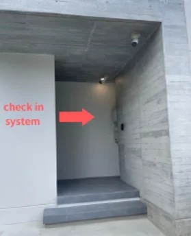 ポストの上にチェックイン用のタブレットが入った箱があります。