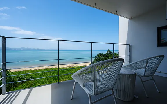 ONNA RESORTのこだわりの家具が心も身体も癒し贅沢な滞在をお届けします。